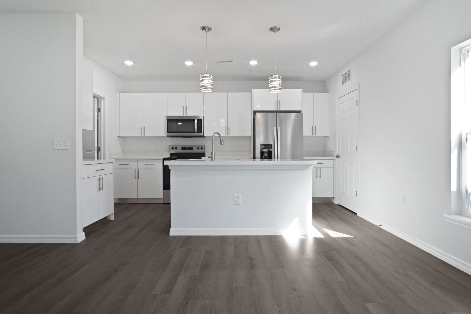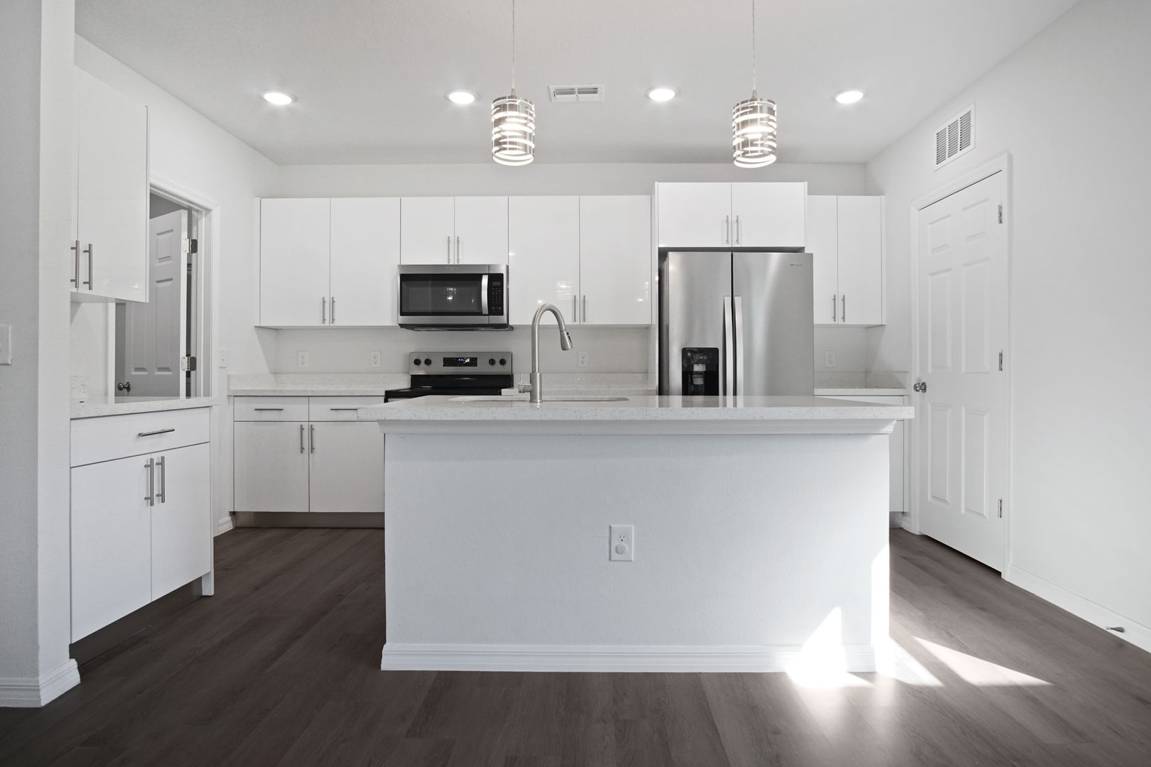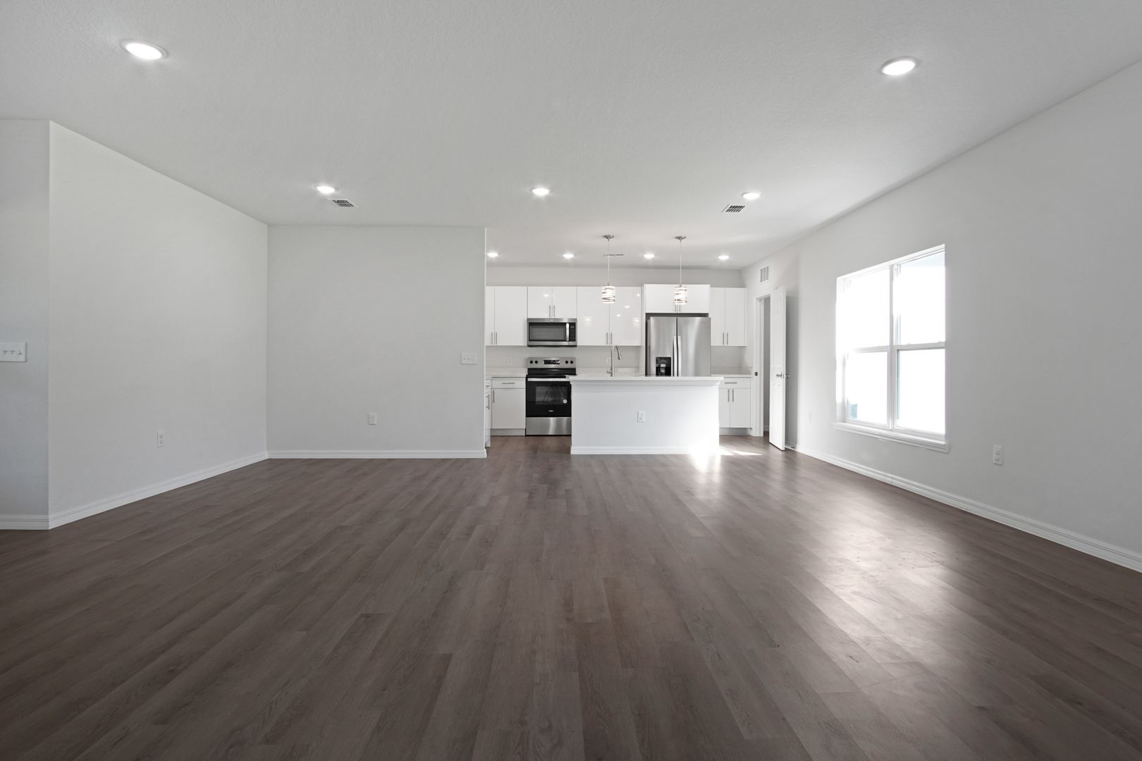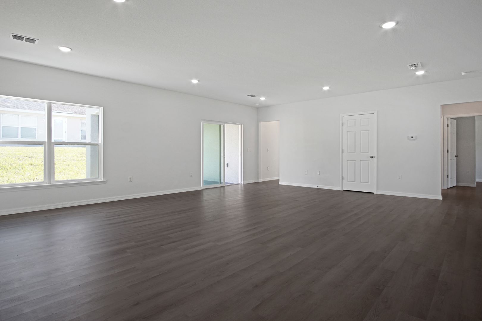 Step inside to a large and inviting living area, perfect for relaxing evenings or entertaining family and friends. The modern kitchen features stainless-steel appliances including a refrigerator, range, dishwasher, and microwave, along with ample cabinet and counter space for everyday cooking. A sliding glass door off the living room opens to a private patio and expansive backyard—ideal for outdoor dining, weekend BBQs, or enjoying Florida’s sunshine year-round.