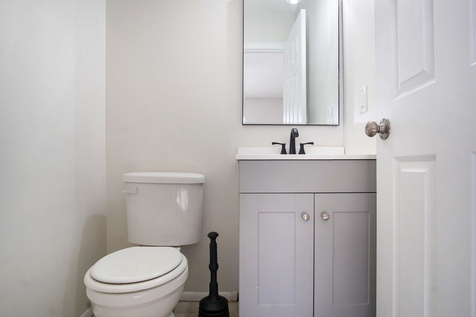 The spacious layout provides two well-sized bedrooms, including a primary suite with its own private half bath for added convenience. The main living area flows seamlessly into the kitchen, creating an inviting space filled with natural light and functionality.