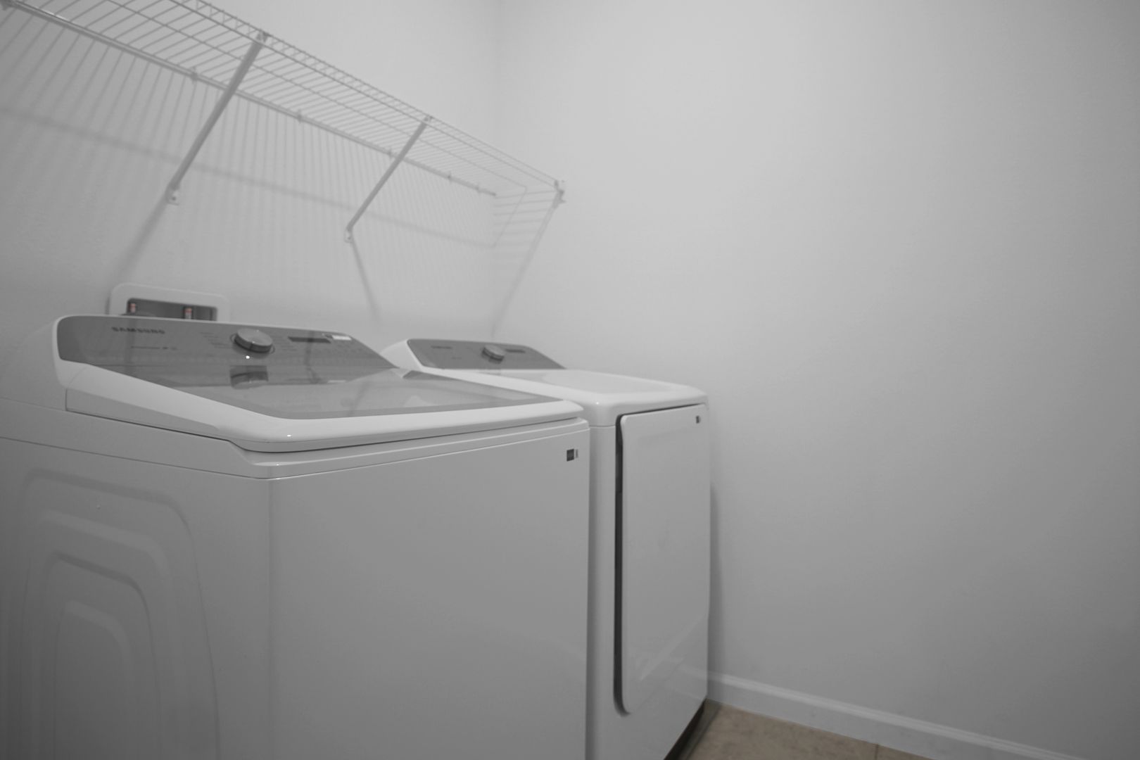 Upon entry, you’re greeted by a hallway layout with two guest bedrooms on the left, separated by a full bathroom with a tub/shower combo. On the right, you’ll find garage access and a dedicated laundry room complete with washer and dryer.